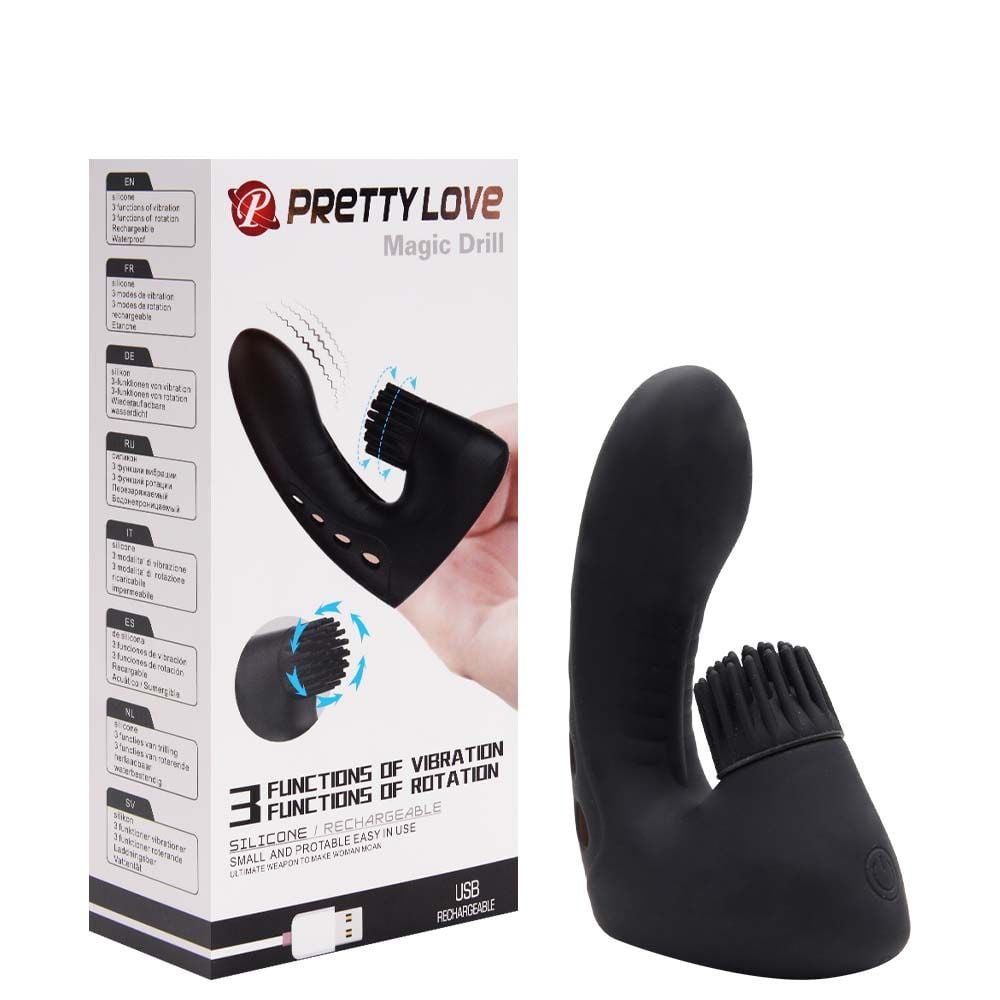 Dedeira Rotativa 3 Vibrações Pretty Love Magic Drill. A Dedeira Rotativa Pretty Love Magic Drill é um estimulador clitoriano rotativo, equipado com cerdas massageadoras para proporcionar sensações intensas. Este dispositivo recarregável possui 3 modos de vibração e 3 modos de rotação, oferecendo uma experiência única e personalizada.
