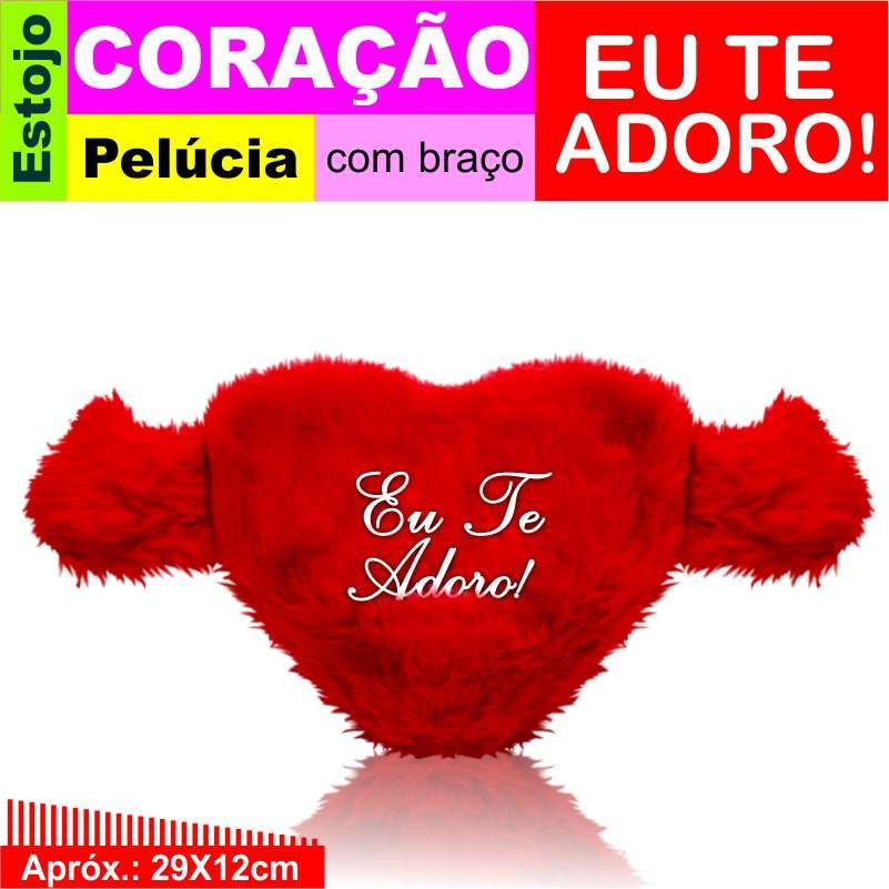 Geral: ESTOJO DE PELUCIA FORMATO DE CORACAO EU TE ADORO COM BRAÇO.