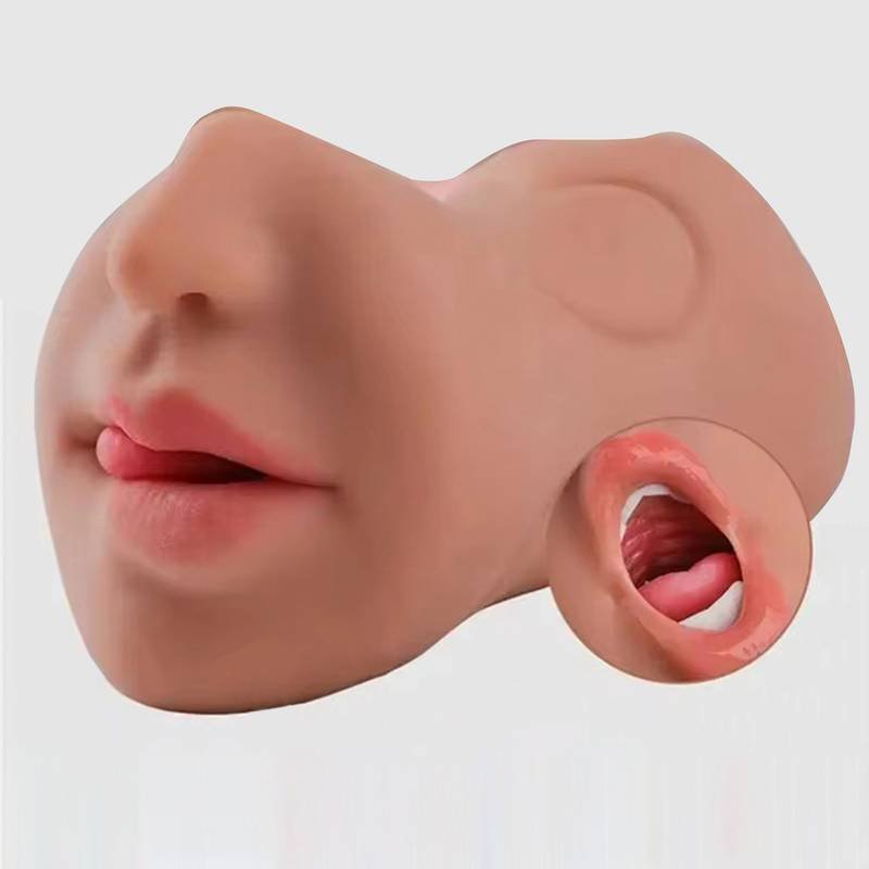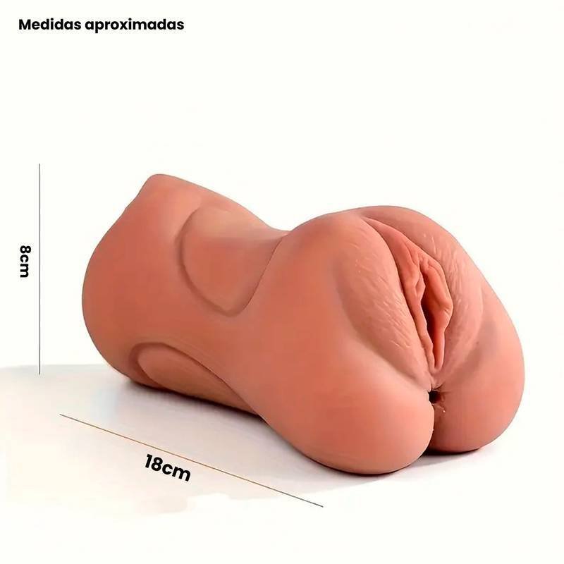 Masturbador triplo com vagina, boca e ânus com túnel de penetração texturizado.