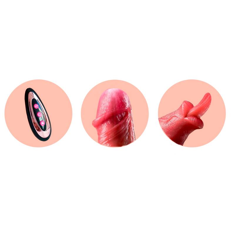 Prótese realística recarregável vai e vem com estimulador clitoriano, glande, veias, escroto e ventosa. Possui 10 modos de vibração e 3 modos de movimento e controle remoto.