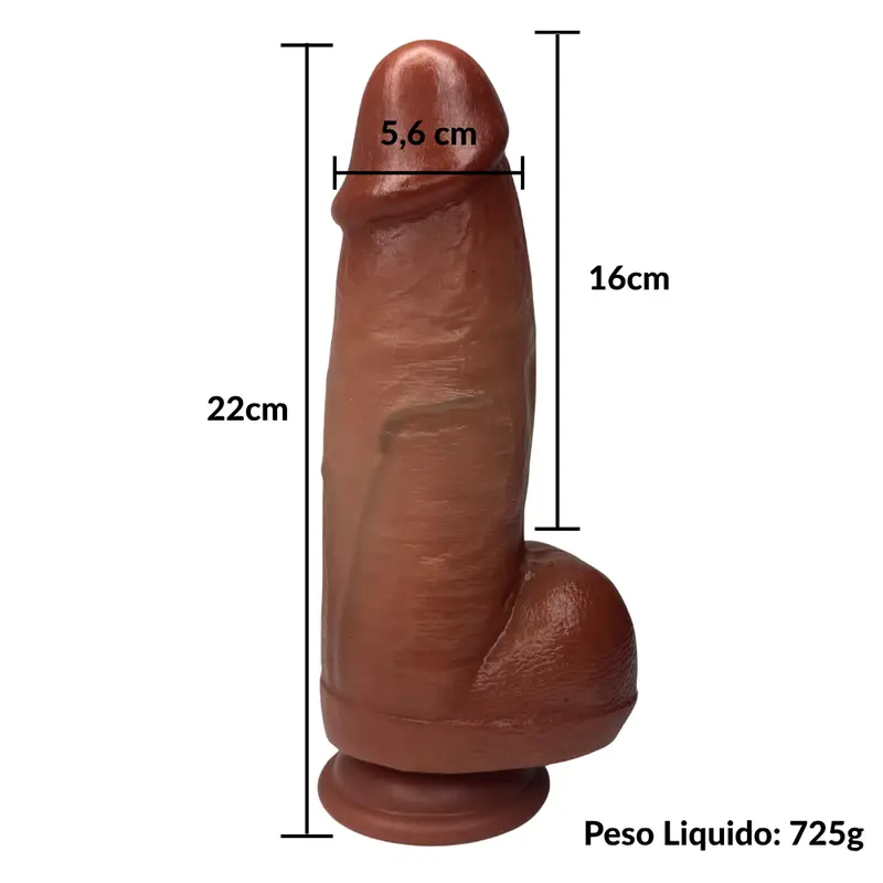 Pênis Realístico com glande, dupla camada de silicone, veias reais, escroto e ventosa, acompanha controle remoto. Possui função de aquecimento para imitar a temperatura corporal, proporcionando uma experiência mais realista.