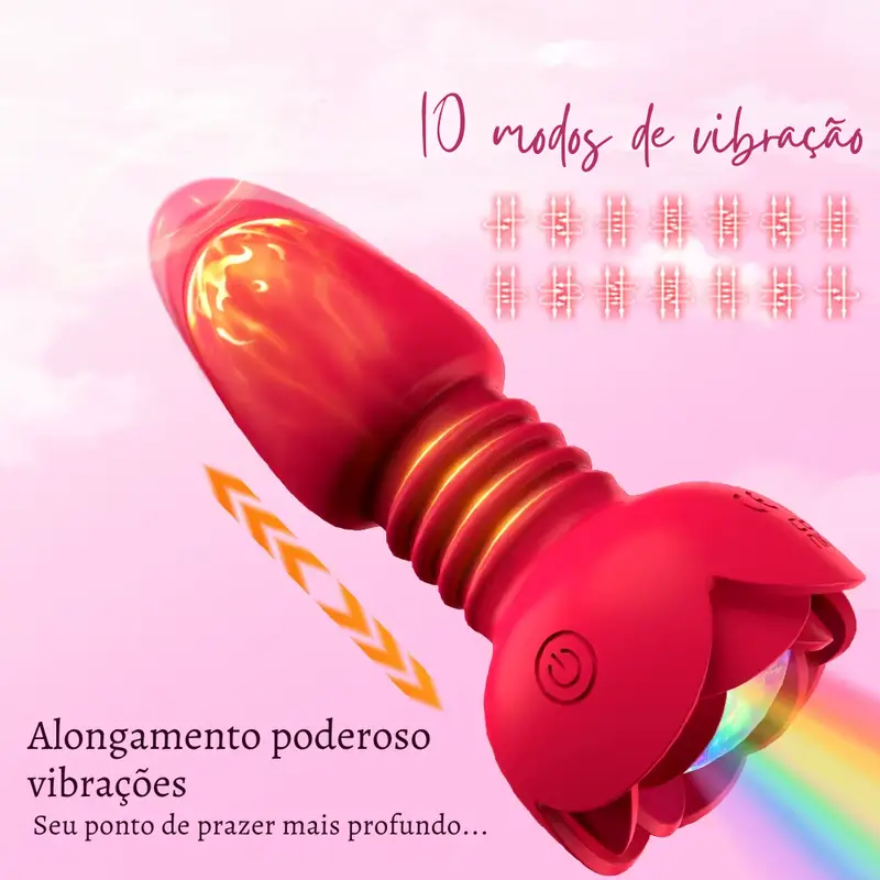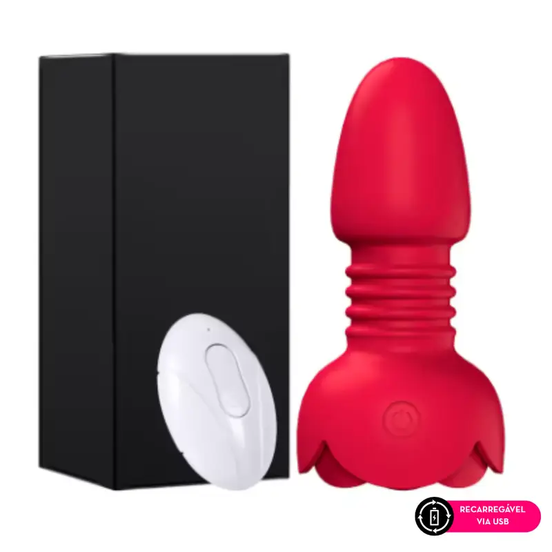 Plug anal vibratório em formato de flor em silicone com base com led e controle remoto. Possui toque suave e aveludado.