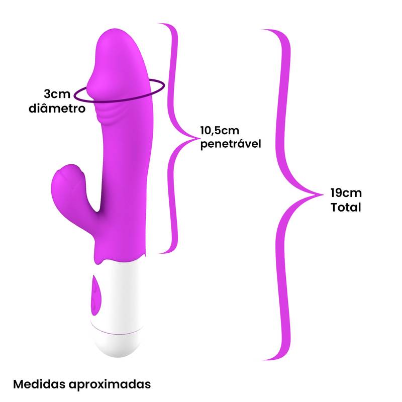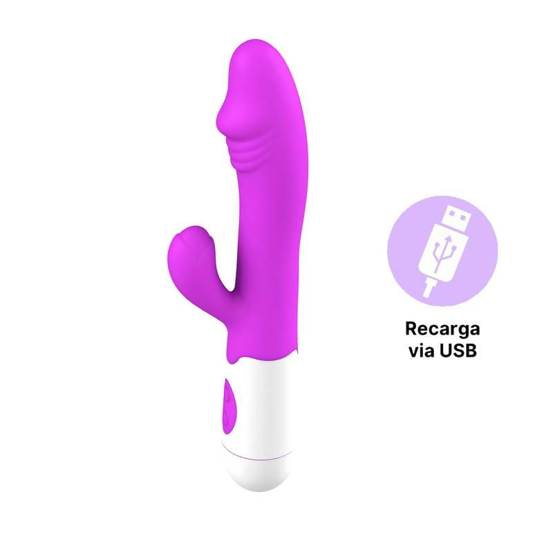 Vibrador recarregável ponto G com estimulador clitoriano.